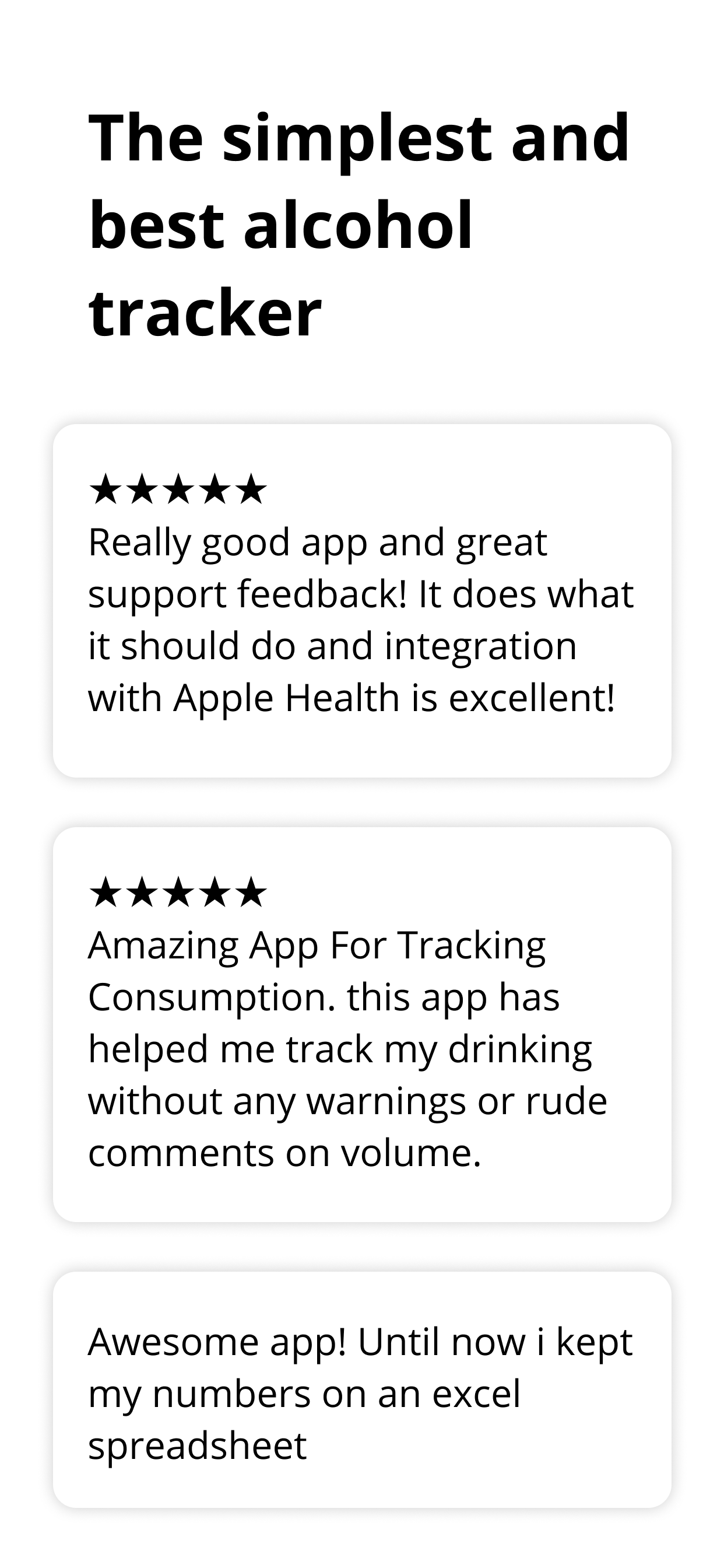 “Simple, calm, and fast. Logging a drink takes seconds and the weekly view keeps me honest.”