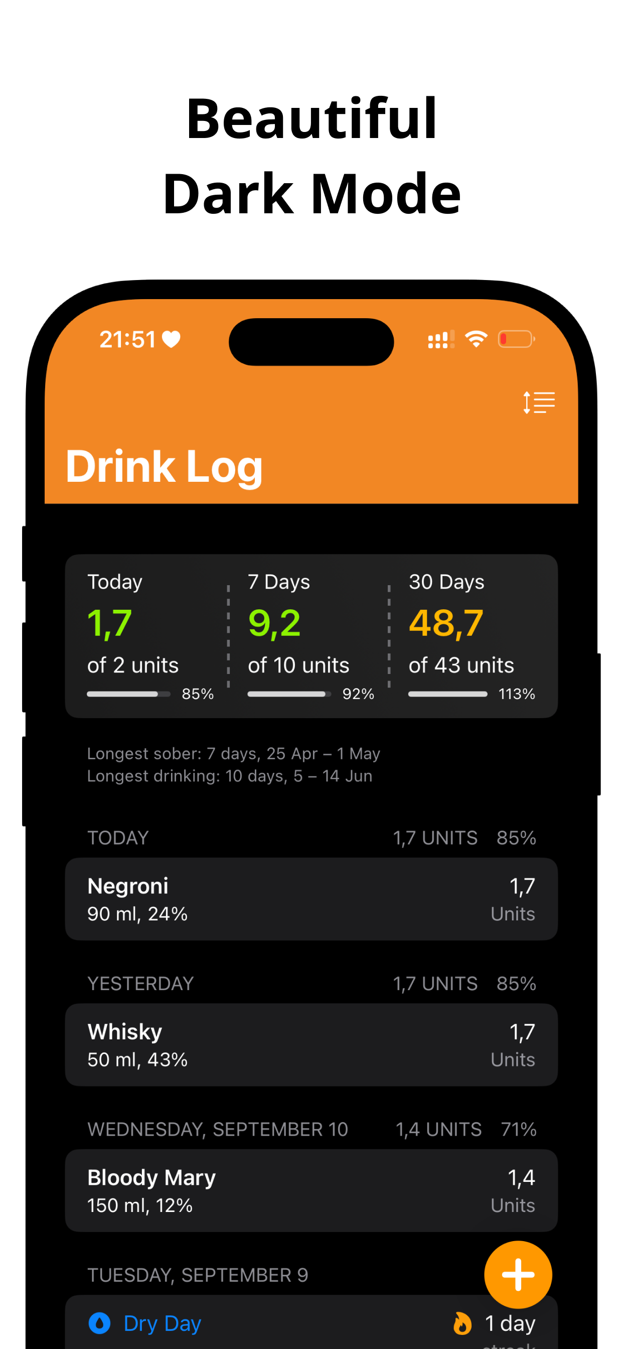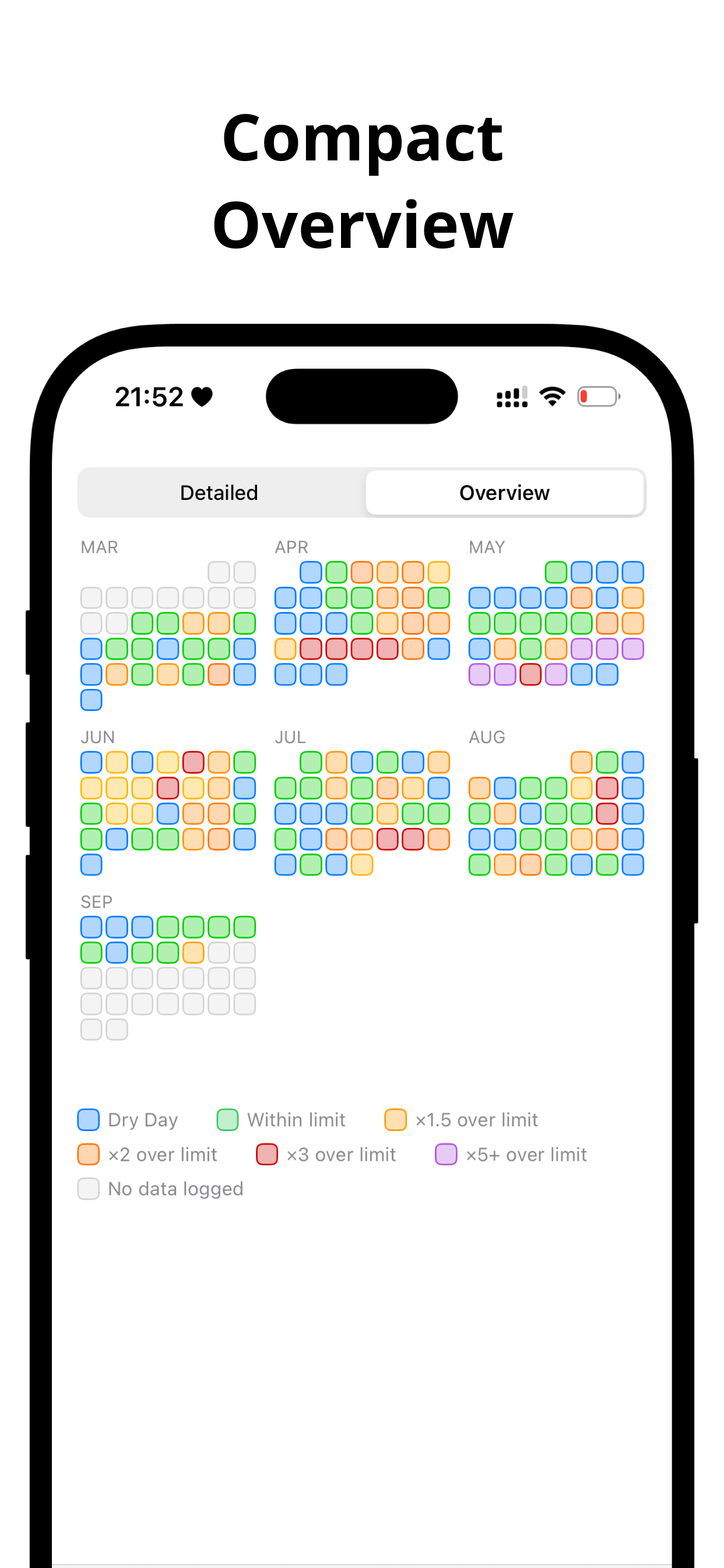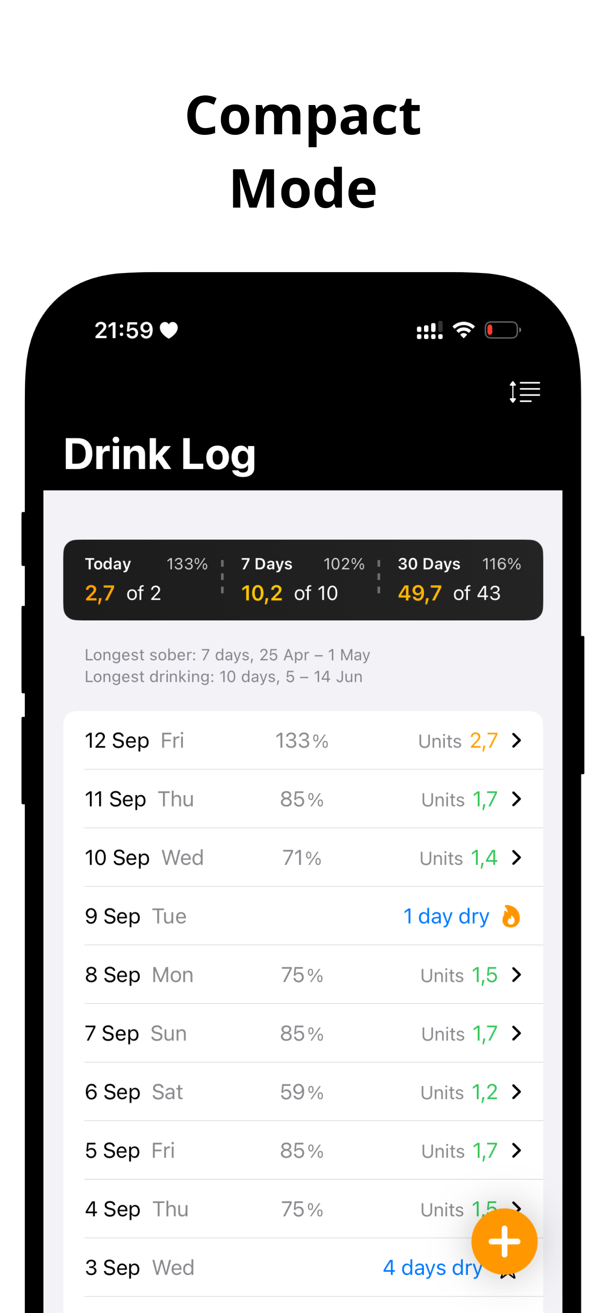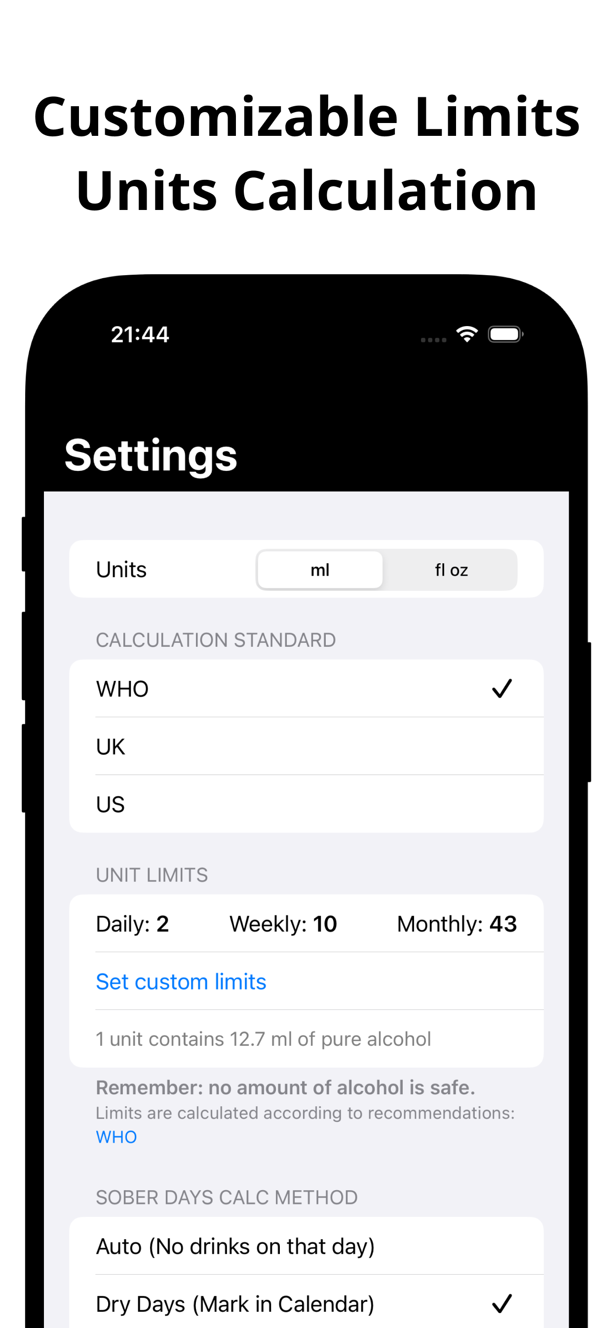 See progress toward weekly limits and celebrate dry‑day streaks.